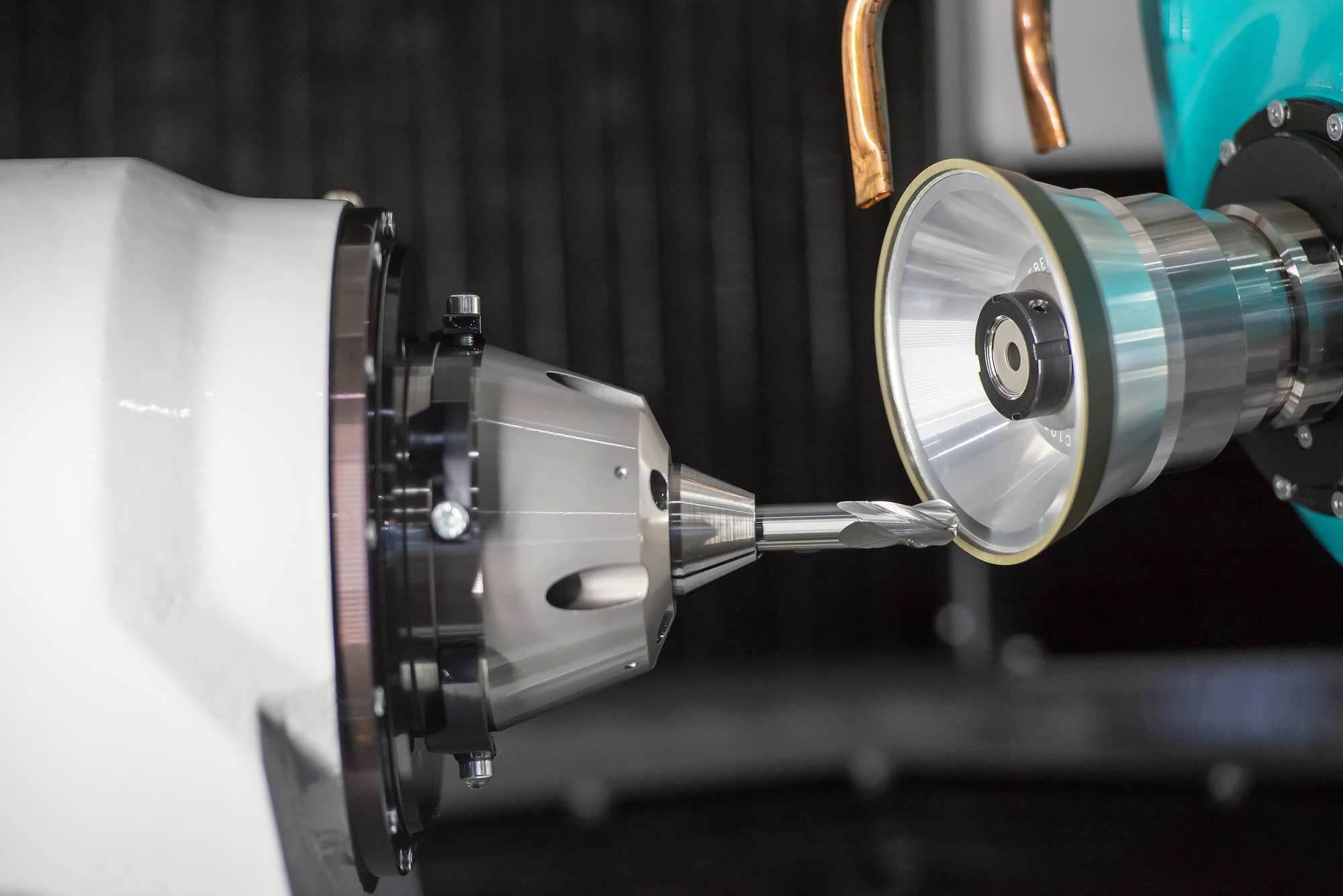 NC研削盤は、砥石で金属の加工を行う機械です。