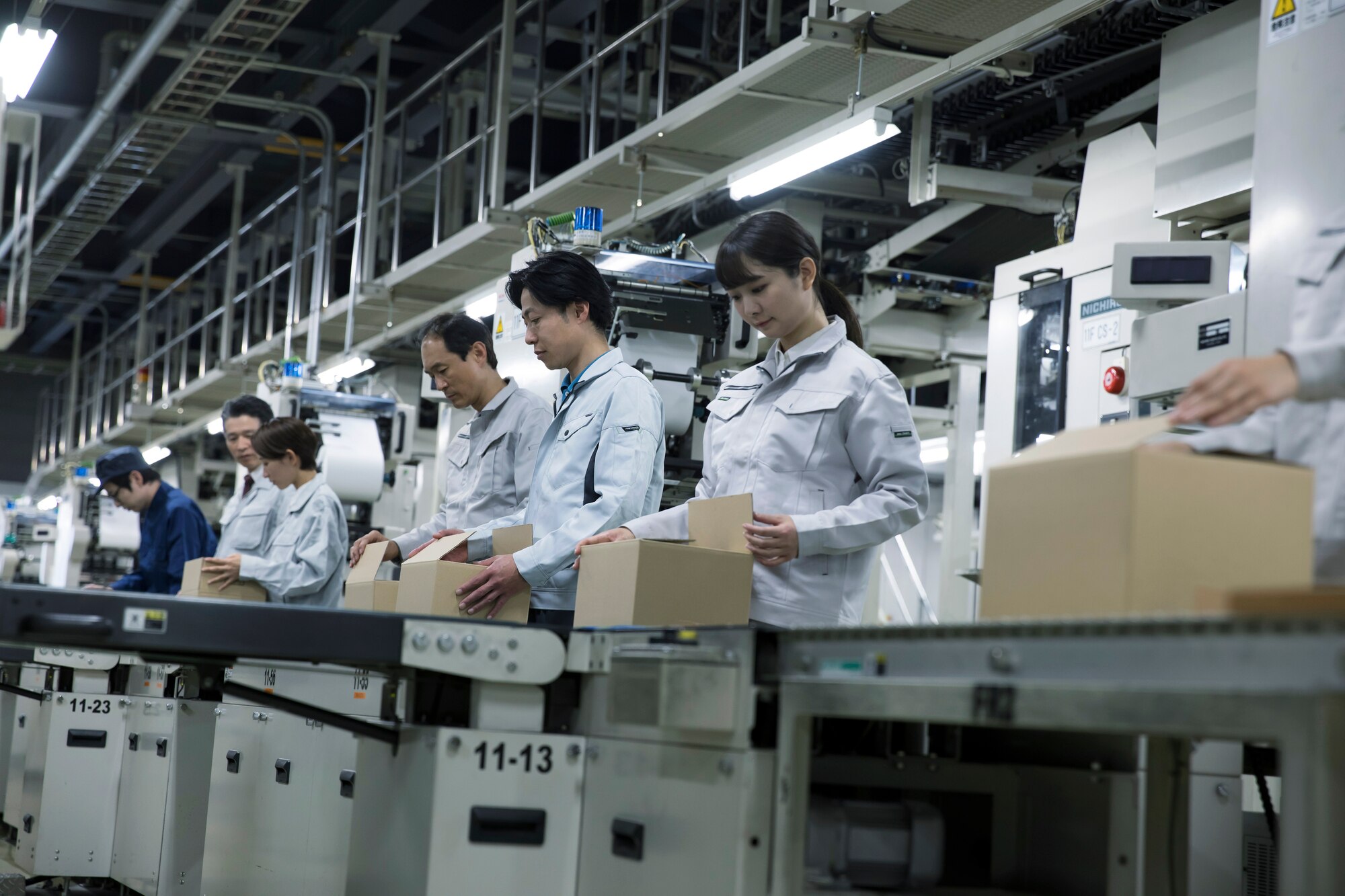 加工・組み立てとは、原材料を加工したり、部品を組み立てたりする作業で、製造業のまさに中心工程です。点検・検査とは、完成した製品を発送できるかチェックすることです。軽作業は、主に発送の際に製品を積み込んだり、あるいは積み下ろしたりする作業です。生産管理は、納期に間に合うよう生産工程全体をマネジメントする仕事を指します。